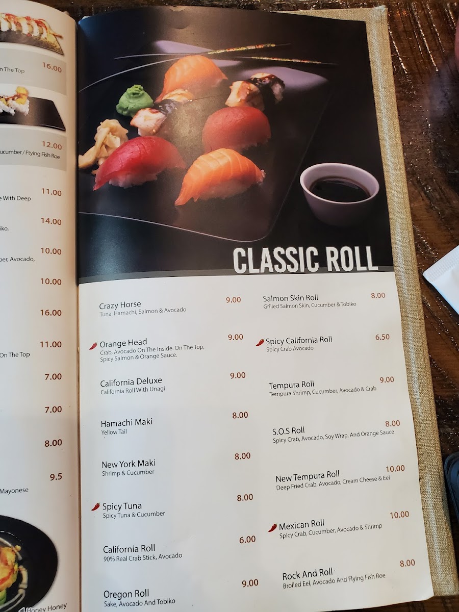 Spicy crab, deep fried shrimp, on the top crab and eel, orange sauce.